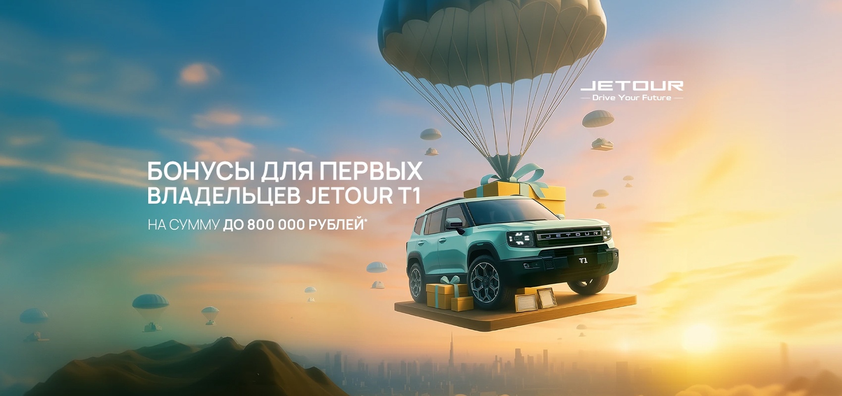 2Кредитное предложение. Приобретайте JETOUR T1 и получите выгоду до 300 000 рублей по стандартной ставке банков-партнеров. Предложение действительно с 16 сентября по 16 октября 2025 года